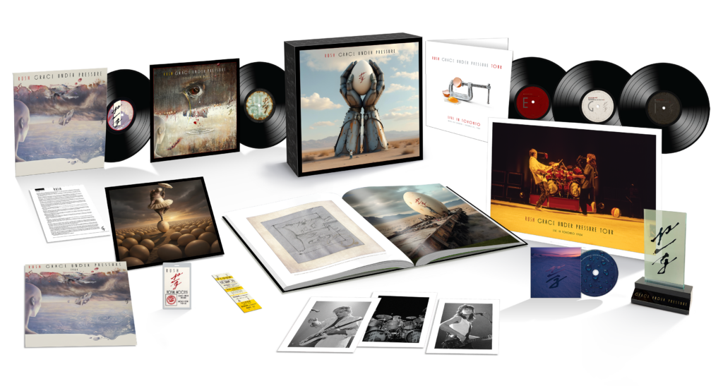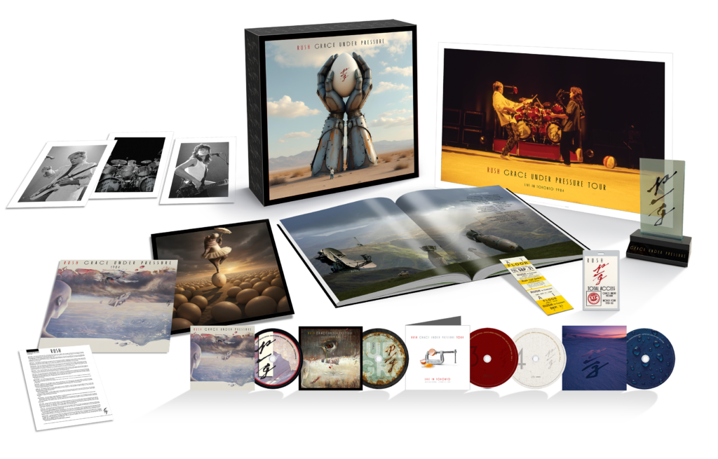JANUARY 22, 2026 (TORONTO, ON / LOS ANGELES, CA) – UMe/Mercury and Anthem Records label groups continue the comprehensive Rush albums expanded reissue series with the arrival of new Super Deluxe Editions of the band’s 1984 release, Grace Under Pressure, an album that saw the trio shifting gears to construct eight technology-driven tracks that were forward driving compositions from their previous works. Grace Under Pressure: Super Deluxe Edition will be available in five distinct configurations, including the (1) Super Deluxe Edition 4-CD + Blu-ray, (2) Super Deluxe Edition 5-LP + Blu-ray, (3) Super Deluxe Digital Edition, (4) Dolby Atmos Digital Edition, and (5) Grace Under Pressure Tour: Live in Toronto 1984 at video DSPs. They can all be pre-ordered and pre-saved HERE.